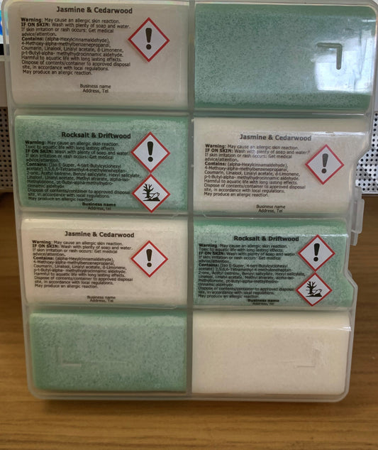 Transparent Toilet & mop bombs/fizzers CLP labels